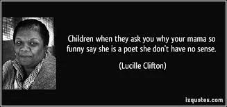 This week we will discuss the poetry of Lucille Clifton and Natalie Diaz. If you have time please google some of their poems and a bit of biography or check out some of their books. What does their poetry have in common? How does it differ. How does gender, race and cultural background influence their work? What can we take from their work to use in ours.